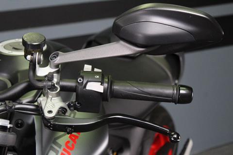 2022 Ducati Monster + in the attractive Aviator Grey with red wheels color scheme, tastefully upgraded with European integrated front turn signals, a tail tidy with LED rear turn signals, a Ducabike clear clutch cover with red-anodized pressure plate, and a great-sounding Termignoni exhaust, this bike needs nothing but a new owner!